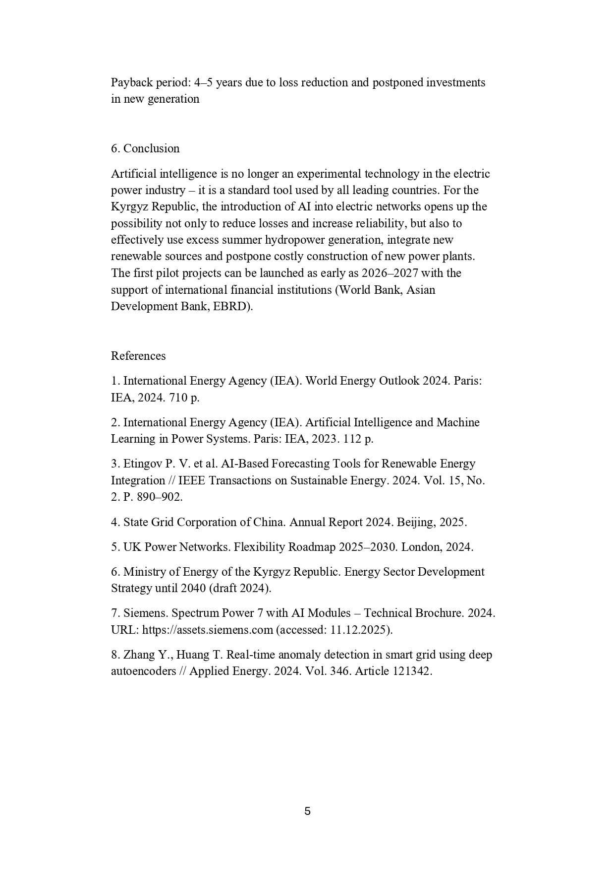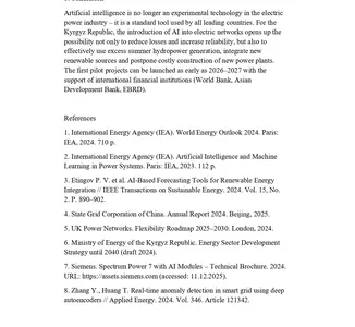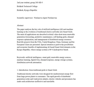Манапбаев Барсбек англис тилинде “Жасалма интеллект жана акылдуу электр тармактары: энергетиканын келечеги кандай иштейт” деген темада доклад жасады.