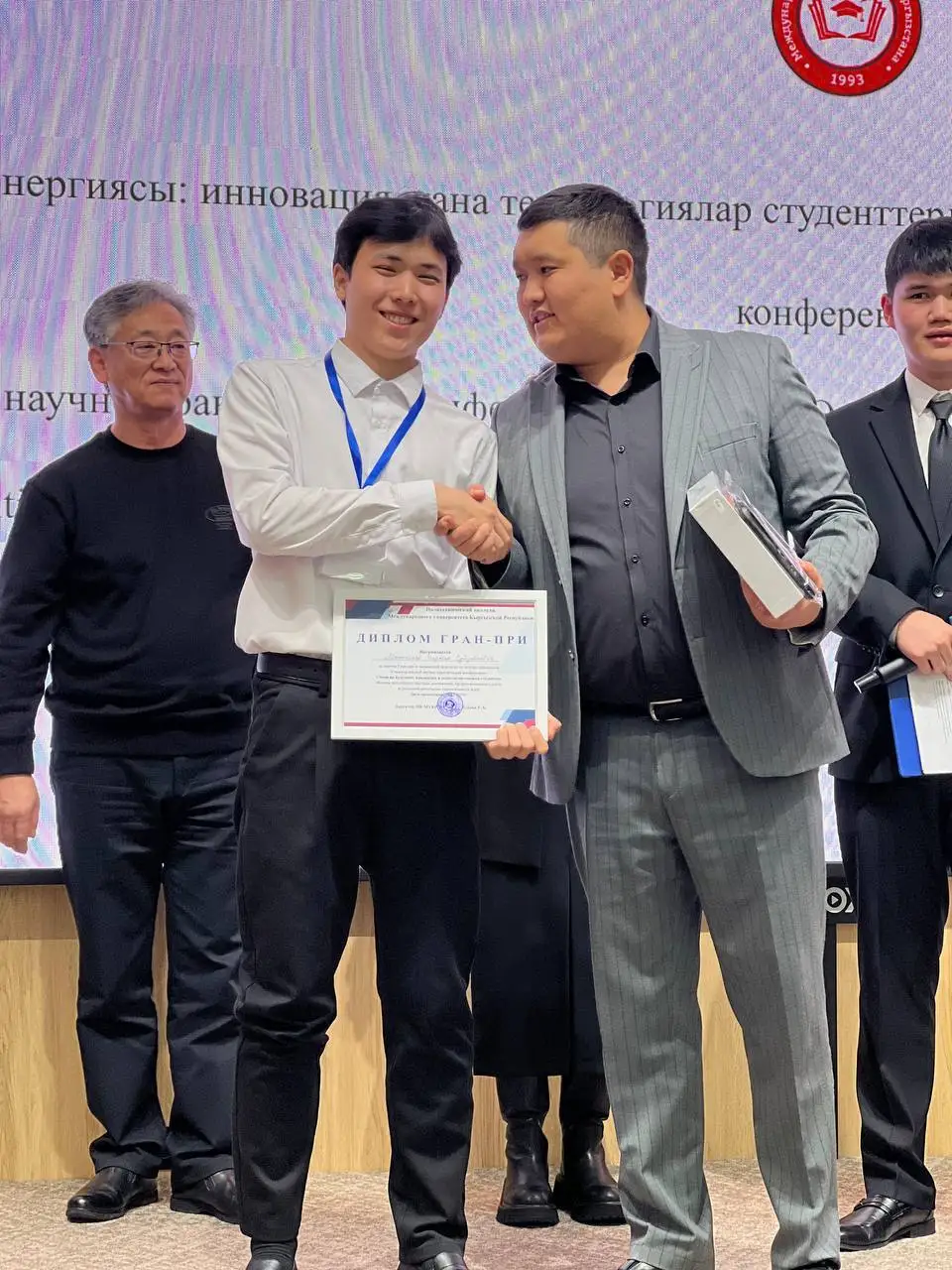 Манапбаев Барсбек, Бишкек техникалык колледжинин 203-3-ПО тобунун студенти, 2025-жылдын 19-декабрында Кыргыз Республикасынын Эл аралык университетинин Политехникалык колледжинде өткөрүлгөн “Энергиянын келечеги: студенттердин көз карашындагы инновациялар жана технологиялар” аттуу межвуздук илимий-практикалык конференцияда Гран-При дипломун алды.